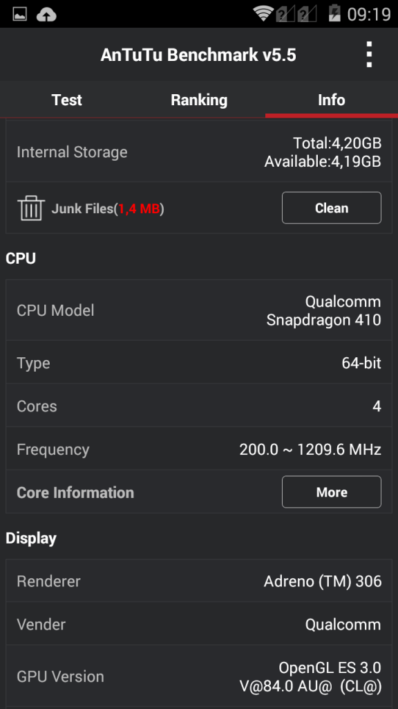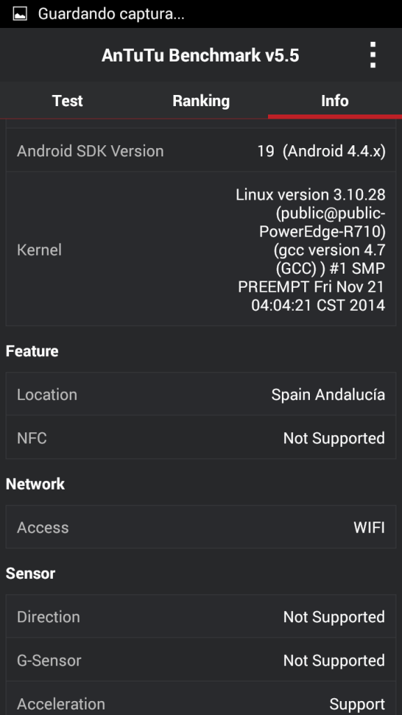 Cubot lleva ya varios años vendiendo sus productos y en general ofrece buena calidad. También es una marca muy conocida por sus tablets a precios de derribo y con unas muy buenas especificaciones. ¿Y que puede aportar este terminal para ocupar un puesto en las listas de compra que no aporte otro? Porque no es más que un terminal chino de 5 pulgadas, de una marca bastante generalista por un precio reducido de unos 100 euros. Respondamos a esa pregunta hablando de sus características, las cuales ampliaremos más abajo; Para empezar abandonamos la tan criticada marca mediatek en el corazón de este cubot y nos incluye el renovado snapdragon 410 de 64 bits. Recordaros que es la renovación del procesador que tanto ha dado que hablar por ir realmente bien en los G de la marca Motorola. Y lo que tal vez sea más relevante para decidirse por su compra; Tenemos 4G y su respectiva banda 800. Ha dado mucho que hablar sobre el que pasa o pasará con los móviles chinos 4G que no incluyen la banda 800 y sin llegar a quedar nada realmente claro. Con este nos curamos en salud y evitamos preocuparnos por ello. Al abrir la caja nos encontramos con el móvil, y bajo este una tapa que nos da instrucciones sobre cómo quitar la tapa, poner la batería, introducción de la sim… La quitamos y nos encontramos con el cargador y su respectivo cable. Los dos de bastante baja calidad. El cargador no es más que los típicos chinos de 1 euro con la marca serie grafiada Por suerte, y es de agradecer, que hayan incluido una carcasa de plástico duro para protegerlo desde el primer momento. Además también incluye un protector de pantalla extra aparte del que ya trae puesto. DISEÑO No destaca en su diseño, sinceramente. Un diseño sobrio y simple, con bordes cuadrados y nada que resulte llamativo. Recuerda bastante a los últimos modelos de BQ sobre todo en el frontal y laterales. Lo que sí quiero destacar es el hecho de que todo el frontal se vea completamente en negro, sin ver la separación entre lo que es el panel IPS y los marcos. Es algo que algunos modelos no tienen y personalmente me da la sensación de que tiene menos calidad. Con respecto a la parte trasera, haciendo un poco de memoria, recuerdo haber tenido hace un par de años un móvil chino con esa misma disposición en círculo cámara-flash. El tacto de la tapa trasera es gomoso, como en los nuevos Motorola moto g 2gen, lo que ayuda a que sea realmente cómodo. Últimamente todos los móviles asiáticos que pasan por mis manos tienen una construcción bastante buena. Este es otro de ellos ya que no se encuentran desajustes ni malas terminaciones. Los botones dan sensación de calidad al pulsarlos y no parece que vayan a fallarnos con un uso correcto. Tampoco he encontrado fugas de luz o rebabas en los bordes. Un detalle que si me ha dado la sensación de poca calidad son los botones bajo la tapa que albergan los botones que realmente tocamos. Pues se ve incluso el flex a simple vista. Poco mas tengo que decir del diseño, pues como ya he dicho es muy simplón. HARDWARE Ahora pasemos a ver las características de este modelo de cubot. En el papel vemos que sin destacar, tiene unas especificaciones llamativas en algunos aspectos. Aunque como veremos más abajo, no es oro todo lo que reluce. >CPU, GPU, RAM Como ya he dicho anteriormente, el corazón de este móvil asiático es el snapdragon 410, la evolución de su hermano de 32 bits. En este caso el procesador es de 64 bits, que viene bien de cara a Android L, que parece ser que lo aprovecha bastante. La velocidad de este quadcore es de 1.2 Ghz. Puede parecer que no es mas que la versión MTK6589 de parte de snapdragon. Pero tengo que decir que para nada. Es un procesador que rinde bastante mejor que estos y que sin duda hace que la experiencia sea muy fluida. Esto lo digo sin desprestigiar al modelo de mediatek, por supuesto. La GPU que acompaña a este Snapdragon es la adreno 306. GPU mas que suficiente para la gran mayoría de juegos actuales. Tal vez se quede algo corta en juegos como en el último modern combat, en los que a la máxima calidad sí que se encuentran bajadas de frames importantes. La ram es de 1 Gb, se nos antoja a poco a decir verdad, pero acompaña al resto de las características del dispositivo. Y a decir verdad no he echado en falta más capacidad de esta memoria en su uso. Por supuesto si que es insuficiente para usos mas intensivos que requieran mayores especificaciones. En cuanto a la memoria interna disponemos de 8 Gb distribuidos de la siguiente forma: Una distribución encontrada en muchos móviles y que realmente es un paso atrás, pues no disponemos de toda la memoria para la instalación de aplicaciones. Al conectarle una memoria SD disponemos de nada mas y nada menos que de 3 particiones. Suerte que existe un mod para juntar las dos particiones que vienen de fábrica. >Pantalla Panel de 5 pulgadas IPS con una resolución de 720p es lo que nos encontramos. Tiene unos colores correctos, sin más. Pero a decir verdad no se ve tan bien como otros paneles similares. De hecho comparándolo con el Moto g 2014 o el Xiaomi note (misma resolución en más tamaño) se nota que no esta tan conseguida. Es como si tuviera una resolución menor a la anunciada y los pixeles se ven más a simple vista. En cuanto a los ángulos de visión sí que tengo que decir que son bastante buenos como podéis ver en las siguientes fotos El brillo se mantiene en la media con lo que al sol es algo complicado manejarse entre los menús aunque no imposible. No se ha encontrado en esta unidad irregularidades en los blancos ni en los negros tales como manchas o brillos destacados, tampoco pixeles vagos ni muertos. >Batería La batería de este Cubot es de 2200 mAh. La verdad es que cunde. En un principio me parecía poco pero en las pruebas he podido conseguir dándole uso más de 5 horas de pantalla. Eso si, con un brillo medio. Así aprovecho para decir que el Motorola Moto G 2014 tiene 207