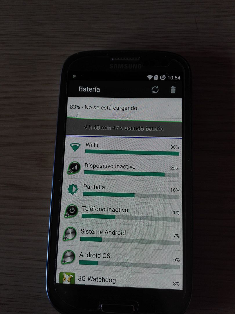 aun asi al ser la bateria nueva le dare un par de ciclos de carga espero que mejore. ademas estos consumos es sin tarjeta SIM puesta ,solo con wifi y sin localizacion ni blueetooh ni nada mas.