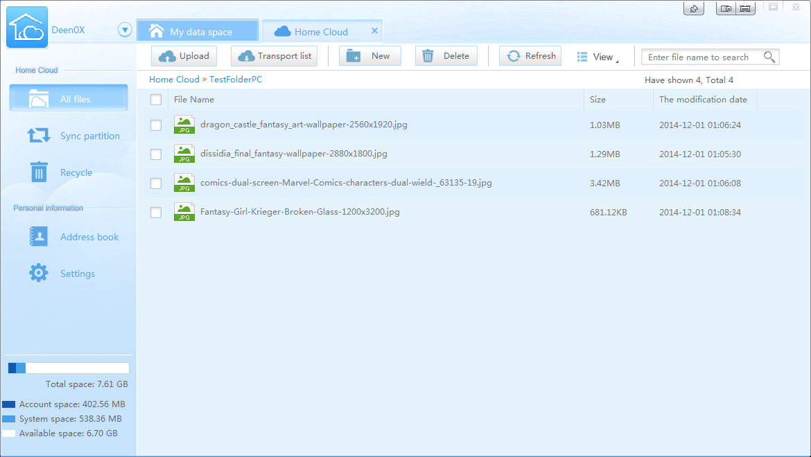 Personal Cloud Esta sección corresponde al fuerte de este dispositivo, y que intentaré comentar lo mas informativa posible. Al presionar en el icono "Private cloud settings (3)" de la pantalla principal, se presentan la siguiente ventana Lo primero que tenemos que hacer es crearnos una cuenta en el servicio de private cloud. Este servicio es algo parecido a un servicio de nombre, y que lo que permite es ubicar nuestro PC estando fuera de nuestra red, sin necesidad de saber ni nuestra IP, ni nada específico. Cuando nos damos de alta, si utilizamos el mismo usuario en otro dispositivo, podremos acceder directamente al contenido existente en nuestro router, de una forma simple y directa. La cuenta se asocia a un correo, al cual le daremos un nickname (apodo) Una vez creado ingresamos los datos en la pantalla de "My account" y ya tendremos configurado el router para ofrecer el servicio de personal cloud por internet (o por la propia red interna) La siguiente pestaña es para configurar el almacenamiento físico de nuestra personal cloud. Aquí tenemos para elegir entre usar un disco duro interno (instalado en el propio router) o un almacenamiento externo por USB. Solo podemos elegir uno de los dos. Si insertamos un disco, lo mas probable es que el router nos indique que hay que formatearlo para poder utilizar. esto es debido a que el router trabaja con el sistema de ficheros ext4, con lo que hay que tener en cuenta esto a la hora de utilizar undisco o pendrive, ya que se perderá toda la información que tengamos en el por el proceso de formateo Una vez formateado ya tendremos acceso al disco desde cualquier dispositivo que tenga instalada la aplicación. Finalmente, y un poco redundante, tenemos nuevamente enlaces para descarga (incluyendo códigos BIDI) a las distintas aplicaciones para poder acceder a nuestra nube personal. Usando nuestra nube personal Una vez configurado el router para acceder a el, creada la unidad de almacenamiento y la aplicación instalada en nuestro dispositivo móvil o PC, llega la hora de utilizar la nube. Lo primero que haremos será abrir la aplicación en el PC (en mi caso es la primera que he probado) La aplicación tiene una barra de opciones que ofrece nuestra nube. All Files En "All files" podremos ver el contenido actual (directorios y archivos) almacenados en nuestro almacenamiento físico. Aquí podremos subir ficheros (botón "Upload"), bajar uno o varios ficheros (botón "Transport list"), crear carpetas, borrar contenido, etc. Sync partition Esta opción nos resultará muy interesante y útil, y que solo encontraremos en el cliente Windows. Con esta opción crearemos una partición en nuestro PC, y que utilizaremos como almacenamiento de sincronización de nuestro disco que tengamos en el router. Cuando creamos la partición, no necesitamos eliminar ni formatear ninguna de las particiones de nuestro disco duro. El programa tomará una parte de la partición que le indiquemos, y generará la nueva partición para montar la imagen de sincronización. Lo curioso es que no he logrado identificar donde se encuentra la partición o el fichero generado. He formateado un disco para analizar lo que sucede al crear la partición, pero no he conseguido averiguar como lo hace, ya que no hay ni un fichero, ni en el administrador de discos aparece una nueva partición ni nada por el estilo. De momento, es un misterio para mi saber donde se está almacenando esta información. Lo que si he podido comprobar es que esta partición solo está "visible" mientras la aplicación para administrar la nube personal se encuentra activa. A continuación las capturas de pantalla que he generado para graficar este ejemplo: En la primera pantalla seleccionamos la partición donde sacaremos espacio para generar nuestra partición de sincronización. En este caso, he seleccionado el disco E; que he formateado específicamente para esta prueba (ojo, no es necesario formatear) Para hacer una prueba, he asignado 772.25MB de espacio de este disco para generar la nueva partición. El sistema genera una partición encriptada, y a continuación monta la nueva partición como unidad en windows. Partición creada y montada. El nombre de la partición podemos cambiarlo luego en windows (propiedades de la partición/cambiar nombre) En el PC, usando el explorador de windows podemos ver la nueva partición montada (los carácteres corrsopnden al nombre en chino, pero podemos cambiarlo sin problemas. Si examinamos la unidad E: que he utilizado para montar esta nueva partición, no vemos ningún fichero o carpeta oculto, ni nada que indique que aquí se monta una unidad. El administrador de discos tampoco refleja esta nueva partición. Dejando de lado esta curiosidad (que espero en algún momento resolver), me dedico a hacer algunas pruebas en esta nueva partición. Si esperamos un poco, veremos que el proceso de sincronización empieza a trabajar de forma automática, replicando los ficheros que tenemos en nuestra nube personal (disco en el router), en la partición que hemos creado. He creado una carpeta en la partición del PC, llamada TestFolderPC, y he copiado algunos ficheros dentro. La carpeta se ve reflejada en nuestra nube, junto con los ficheros que he copiado en ella. Luego he creado la carpeta "TestFolderPCApp" en la nube, utilizando la aplicación, y podemos observar que dicha carpeta se ha replicado en la partición del disco duro. Como podemos observar, la herramienta de sincronización resulta muy útil y práctica para tener un disco duro común donde acceder a ficheros desde distintos dispositivos, y es una de las claves del uso práctico de este router. Recycle La pantalla Recycle es, como podemos deducir, el sitio donde se van los ficheros que vamos eliminando. En esta pantalla podemos recuperar ficheros y carpetas, borrar definitivamente un fichero en particular o todo el contenido de la papelera. Personal information / Address book La siguiente ventana corresponde a "Pers