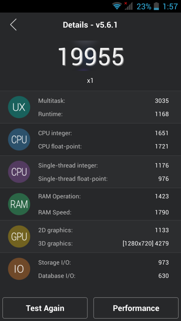 Esta vez os traigo la review de un Smartphone algo peculiar. Seguramente ya lo hayáis visto por el foro por el sorteo que hubo y demás, pero es el turno de conocerlo un poco más a fondo. Se trata del No.1 X-men X1, un Smartphone bastante pesado debido a sus refuerzos de goma y metal y por su batería de gran capacidad. No se trata de un Smartphone potente, pero si que cumple de sobras en cuanto a potencia. Su mayor baza es la resistencia a golpes, agua, polvo… y como veremos en esta review, la verdad es que cumple. Entre sus accesorios se encuentran una tarjeta multiusos como las que venden en muchas tiendas asiáticas, manual de instrucciones, cable OTG y cargador de 1 amperio (A mi parecer algo corto para la batería de este móvil). Su diseño, a mi parecer, es horrible. Ciertamente no he visto aun un Smartphone todoterreno que resulte atractivo, y este no iba a ser menos. Prácticamente es un Smartphone de un tamaño considerable con una funda de goma bastante gruesa anclada a este. Su excesivo peso de nada más y nada menos que unos 315 gramos y unas medidas de 154.3x85.0x15.8mm hacen del Xmen x1 un aparato bastante incómodo para usar en el día a día. En el frontal nos encontramos con la pantalla, unos bordes que en un principio solo cumplen la función de adornar un poco, altavoz frontal en la parte superior ubicado como en una especie de pieza individual, y, siguiendo este mismo diseño, otra pieza inferior que contiene la tapa del conector micro USB. Curiosamente en este Smartphone la disposición típica de los botones capacitivos cambia. Añadiendo un cuarto botón de búsqueda como era lo común en los dispositivos móviles de hace algunos años. En el borde izquierdo no encontramos nada a destacar. Nos vamos al borde contrario y tenemos los botones de volumen, seguidos del de bloqueo y encendido. Estos botones tienen una dureza bastante considerable. Tanto es así que se lo deje a los niños para que hicieran uso de la batería y poder conocer su duración, y no tuvieron fuerza para aumentar el volumen. Lógicamente esto es debido a que hay que vencer la fuerza de la goma que lo protege del agua. En el borde superior tras una tapa de goma está situado el conector de 3.5 mm para auriculares. Un poco más abajo una ranura aparentemente para poder colgarlo. Nos vamos a la parte inferior y solo nos encontramos con una tapa de goma atornillada al cuerpo del móvil que hace las veces de estanqueidad al conector micro USB. Se retira fácilmente y, al menos en este caso, queda bastante bien encajada. En su parte trasera tenemos una tapa atornillada con dos tornillos planos de gran grosor para que sea fácilmente removible usando por ejemplo una moneda de 2 céntimos. Incluye la serigrafía IP-68 lo que nos adelanta su resistencia. Al desatornillarla por la otra cara vemos que esta reforzada por una placa de chapa o aluminio. Bajo la tapa la batería. Una batería bastante gruesa con un peso de 63.4 gramos. Lo que puede hacernos la idea de su capacidad sin ver la numeración que lo indica. Extraída la batería tenemos completa disponibilidad de las ranuras SIM y la ranura para tarjetas micro sd. Salimos de este hueco y nos vamos un poco más abajo. Donde están alojados los (el) altavoz principal. He estado leyendo que tiene altavoces estéreo, Pero solo una de las ranuras parece ser real. Justo arriba del hueco tenemos el conjunto cámara-flash-micrófono de reducción del ruido. Y a cada lado en forma de iconos con relieve, algunas de las características de este basto Smartphone. Al ponerle la tapa de la batería vemos como el borde que sobresale de la tapa y el borde superior dedicado supuestamente a la posibilidad de colgarlo hacen puente. No estoy seguro, pero me hace pensar que el cristal de la cámara no es tan resistente y de esta forma queda más protegido ante golpes. Tengo que decir que la batería no queda suficientemente bien sujeta y realmente es un problema de diseño en este dispositivo como veremos más abajo. Puesto que una vez atornillada no deberíamos de tener de nuevo la necesidad de quitarla, poner un trozo de papel puede ser una solución bastante rápida. En cuanto a diseño poco más tengo que objetar. Pasemos al apartado técnico. Sin duda alguna tenemos un Smartphone de gama media con respecto a sus características. Pero me voy a permitir el lujo de compararlo con el Smartphone todoterreno que tiene decathlon. Con un precio superior sus características son a mi parecer bastante inferiores. Pero el caso no es comparar. En este dispositivo de la marca No.1 no vamos a estar sobrados de potencia porque como dije su principal virtud es su construcción. La GPU de este terminal es el más que conocido y veterano M6582. Un procesador de origen mediatek, evolución del mas antiguo M6589. Siendo el 6582 más eficiente ya que aumenta su frecuencia en 100 mHz y su consumo energético es menor. La GPU que acompaña al M6582 es la mali 400 MP2. Un procesador grafico dual core que funciona a una frecuencia de 500 mHz. Si bien no llega a las actuales Mali400MP4 o las mas actuales aun que acompañan a los procesadores de 64 bits (Serie T), si que cumple holgadamente para la gran mayoría de juegos actuales. No esperemos que tire a la máxima calidad de juegos como modern combat, pero si para juegos mas modestos. En cuanto a su RAM disponemos de 1 Gb. Un conjunto típico y que pocas veces en este apartado ha sido mayor su capacidad. Con respecto al resto de especificaciones, el Gb de ram es el que le corresponde. Aunque luego se han encontrado excepciones como pueden ser el Honor 3C, que equipa 2 Gb de RAM. Tal vez cuando lo tengamos en la mano de la sensación de que disponemos al menos de 5.5 pulgadas debido al tamaño de sus bordes engomados. En este caso tenemos un panel IPS de 5 pulgadas con una capa protectora de origen gorilla glass. Según el fabricante tenemos una resistencia a los impactos de hasta 1.5J. Centrémonos en el panel. Su resolución es de 